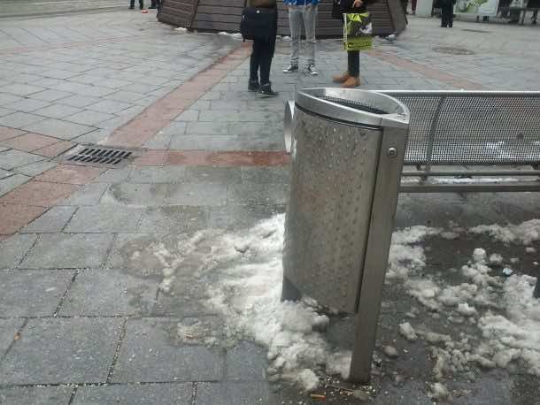 为了防止青少年和其他把平顶垃圾桶作为休息点的人,市议会采用了倾斜垃圾桶。