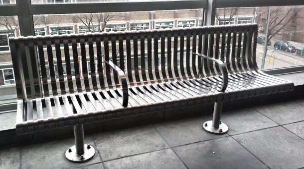 一种创新的方法是在长椅和其他公共休息区域安装金属固定装置,以防止滑冰运动员和小轮车车手进入。