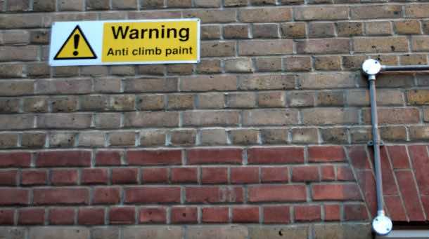 涂了不干油的墙壁总是黏糊糊的,油腻腻的。因此,没有攀岩者能在墙上站稳脚跟。接触到墙壁的人会留下油漆的痕迹。