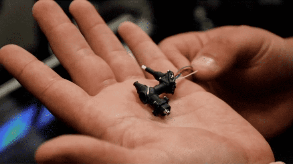 迷你电视大约1(2,54厘米)英寸高,重量不到4克。它可以通过放置在动物头上的底板上来捕捉神经元的活动。这些数据通过一根细电线发送到计算机进行分析,以便更好地观察大脑活动。