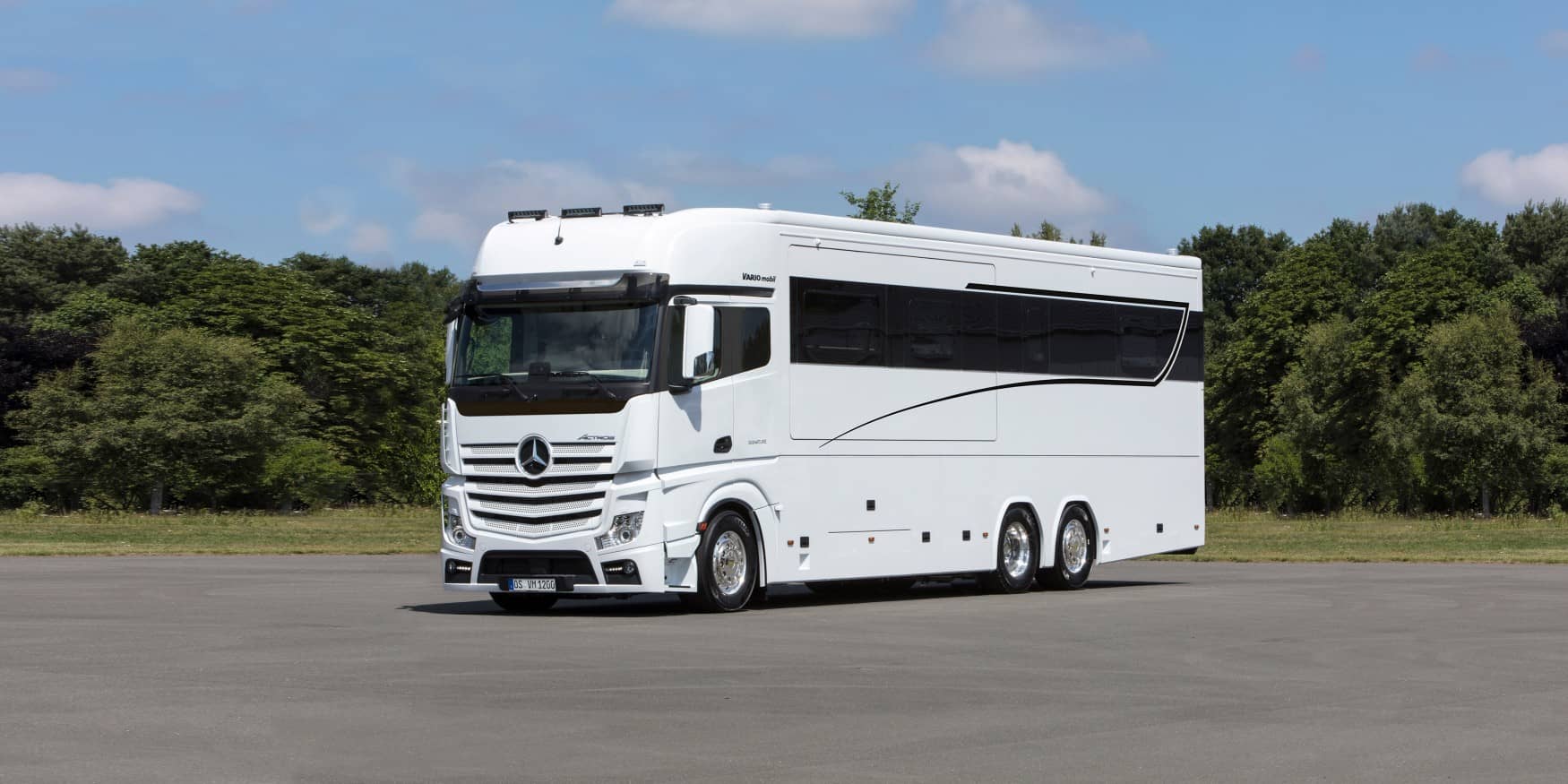 世界上最昂贵的房车即将在Düsseldorf房车沙龙上上路,它是到达那里的最大房车之一。Variomobil Signature 1200由523马力的奔驰发动机提供动力,这辆大巴士甚至可以容纳你的保时捷911、Mini Cooper或奔驰SL跑车。完美的生活旅行套餐,对吧?