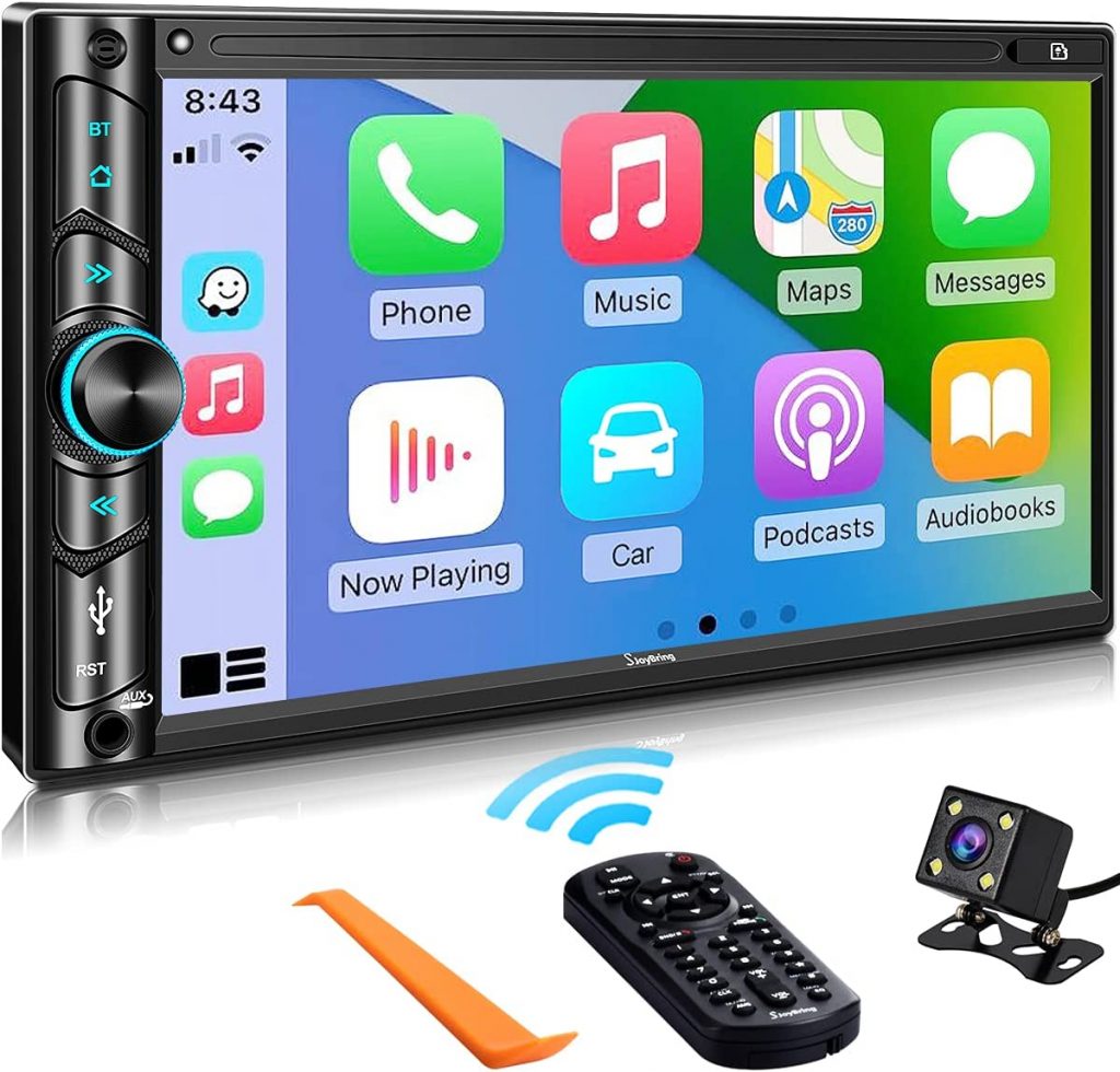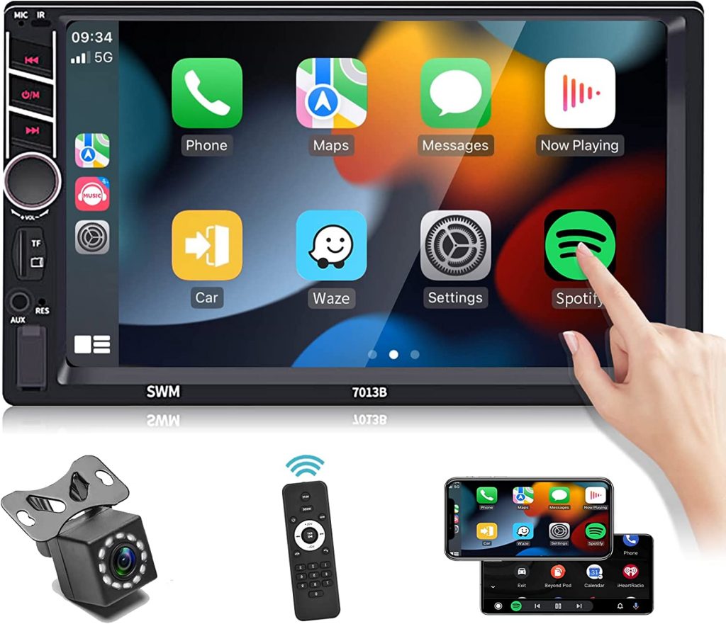 这款双DIN CAR立体声与Apple Carplay兼容,可以使高级语音辅助控制并使您更容易访问iPhone功能,包括音乐,地图导航,呼叫,通知,消息等,同时保持双手释放,以完全安全地驾驶。使用汽车屏幕而不是手机来实现汽车智能。