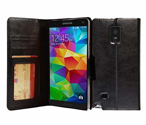 这里我们有三星Galaxy Note 4的IZENGATE外壳,配有高级皮质翻转,售价12.99美元。它有一个snap - on-design和特色的支架以及。该案例带有3个卡槽和一个带子,可以删除,如果需要。你可以买一个在这里