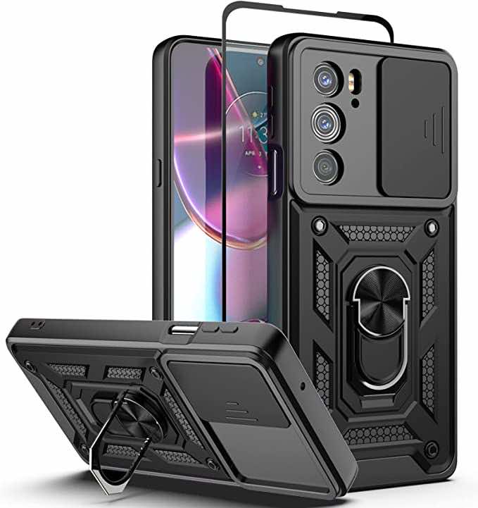 这些保护套的设计完全适合摩托罗拉Edge Plus 5G UW 2022,避免对屏幕或镜头造成任何物理损坏。相机有一个滑动窗口,关闭时可以完全遮挡相机,外壳有纹理,以避免磨损。表壳有一个钢制支架,可以旋转,以获得更好的视角。