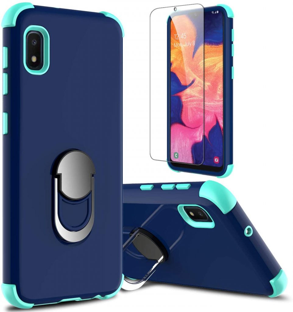 接下来是Lovpec为三星Galaxy A10E设计的案例。外壳由两层抗冲击层制成,具有防震和抗刮性,内部采用柔性TPU,外部采用硬PC,保护您的手机免受日常磨损。精确的切割保证了所有按钮和充电端口的可访问性。它还有一个金属环,可以免提观看。