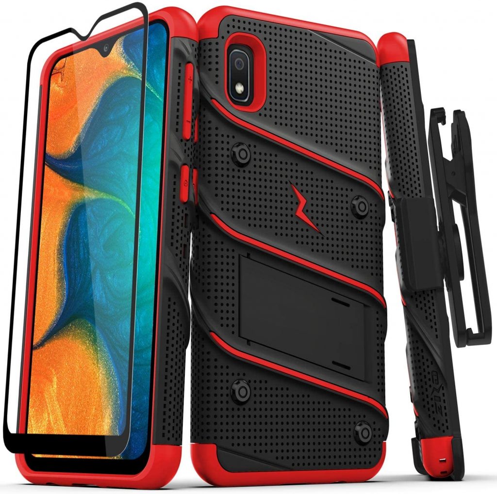 第五个是三星Galaxy A10E的Bolt系列的ZIZO保护套。该外壳具有双层设计,以分散冲击力,在意外跌落的情况下,确认军事级跌落试验标准。它有一个360度可旋转的夹子,隐藏的卡槽和内置支架的额外功能。这是一个结合了减震核心和坚固外壳额外保护的最好的情况。它还配有玻璃屏幕保护膜,以防止手机屏幕破碎。