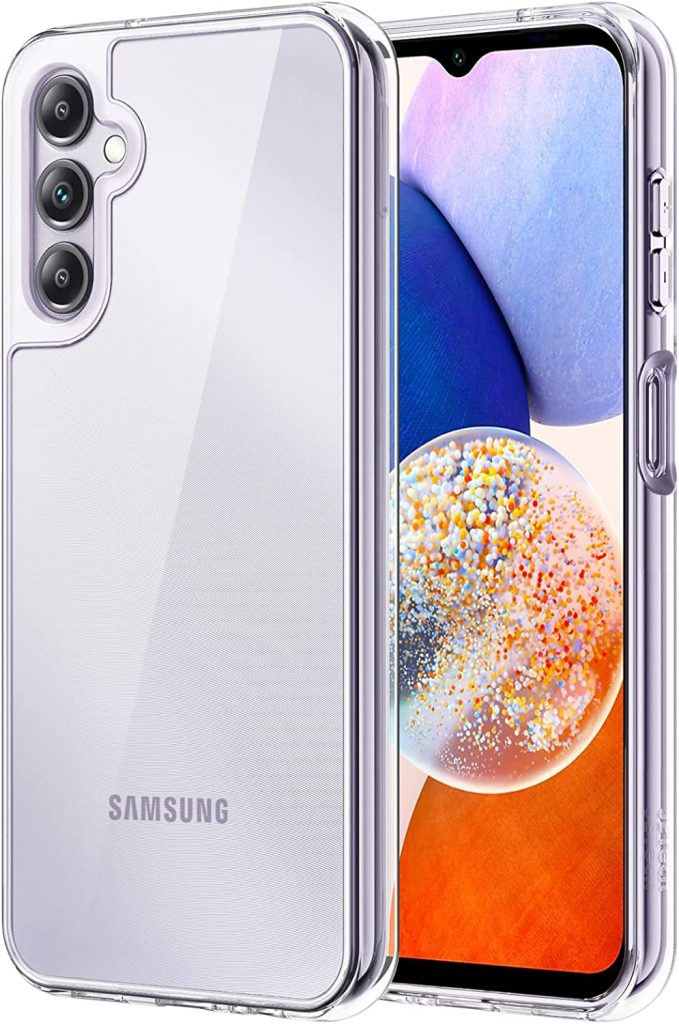 接下来是三星Galaxy A14 5G JETech Case。手机壳由高质量的TPU材料制成,这种材料是一种灵活、轻薄的硅胶,与手机完全吻合。它内部的微点设计防止了透明外壳中常见的潮湿和黏糊糊的外观,从而有助于保持你手机的美丽设计。柔性TPU和减震角的组合有助于保护您的手机免受跌落和其他影响。