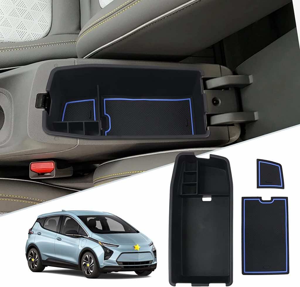 雪佛兰Bolt或雪佛兰Bolt EV是一款电池电动超小型掀背车,由通用汽车在雪佛兰品牌下生产。内饰是全新的,包括更舒适的前排座位,并增加了柔软的触感材料,以提供更高级的感觉。信息娱乐系统和齿轮选择器更易于使用。主动安全功能包括FCW,带行人检测的AEB,带车道偏离警告的车道保持辅助,以及自动远光灯。价格实惠的全电动汽车的新时代已经到来,而雪佛兰Bolt EV正在引领潮流。它具有卓越的效率、尖端的技术和夸张的风格。你希望你的车有更多的存储空间吗?更新您的中控台管理器可能是解决方案。中控台组织者做一个伟大的工作,保持您的机舱整洁。中控台是位于两个前排座位之间的储物隔间。 Some center console organizers also have lockable storage. This allows you to keep your valuable items secure. Whether you need more storage, or you want to upgrade your current console, you may be searching for a better organizer. If you are looking for the best quality center console organizers that you can order off Amazon right now, we are here to help. These are the 10 best center console organizers for Chevrolet Bolt. Do ensure that the product you picked is compatible with your model, though. Keep scrolling to see what we picked out!