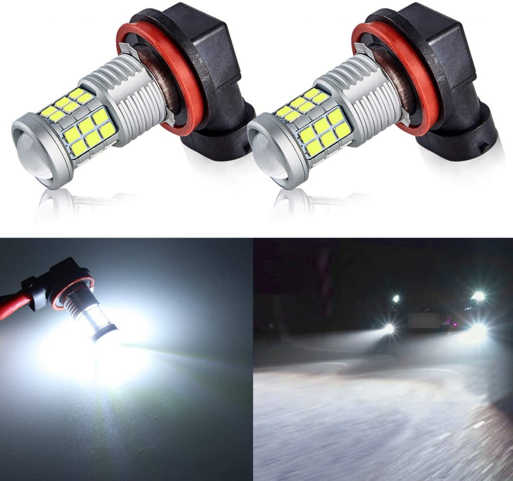 2.KISLED超亮3000lm H8 H11 LED雾灯灯泡DRL高功率3030芯片与投影仪镜头,6000K氙气白