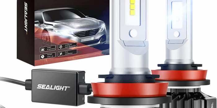 SEALIGHT h11 led灯泡套件比卤素灯泡亮6倍,超聚焦明亮的6000K氙气白光足以取代你的黄色库存灯泡。EALIGHT H11灯泡防闪烁,无风扇设计紧凑静音,适用于99%的车载电脑而不会抛出任何错误