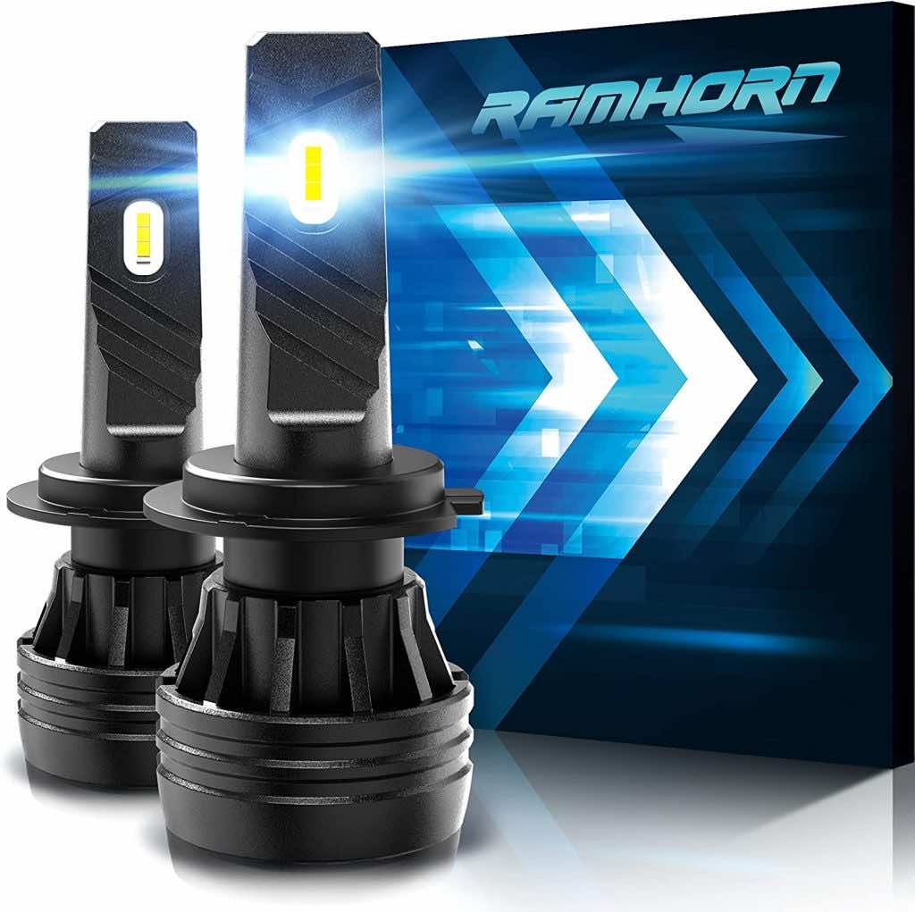 RAMHORN LED大灯灯泡,采用优秀光源技术芯片,360度光束角,6500K炫酷白光,每对10000流明高亮度。他们有可调的安装颈,适合多种类型的灯壳与360度角光束模式。你可以做一个简单的角度调整,以获得完美的模式。