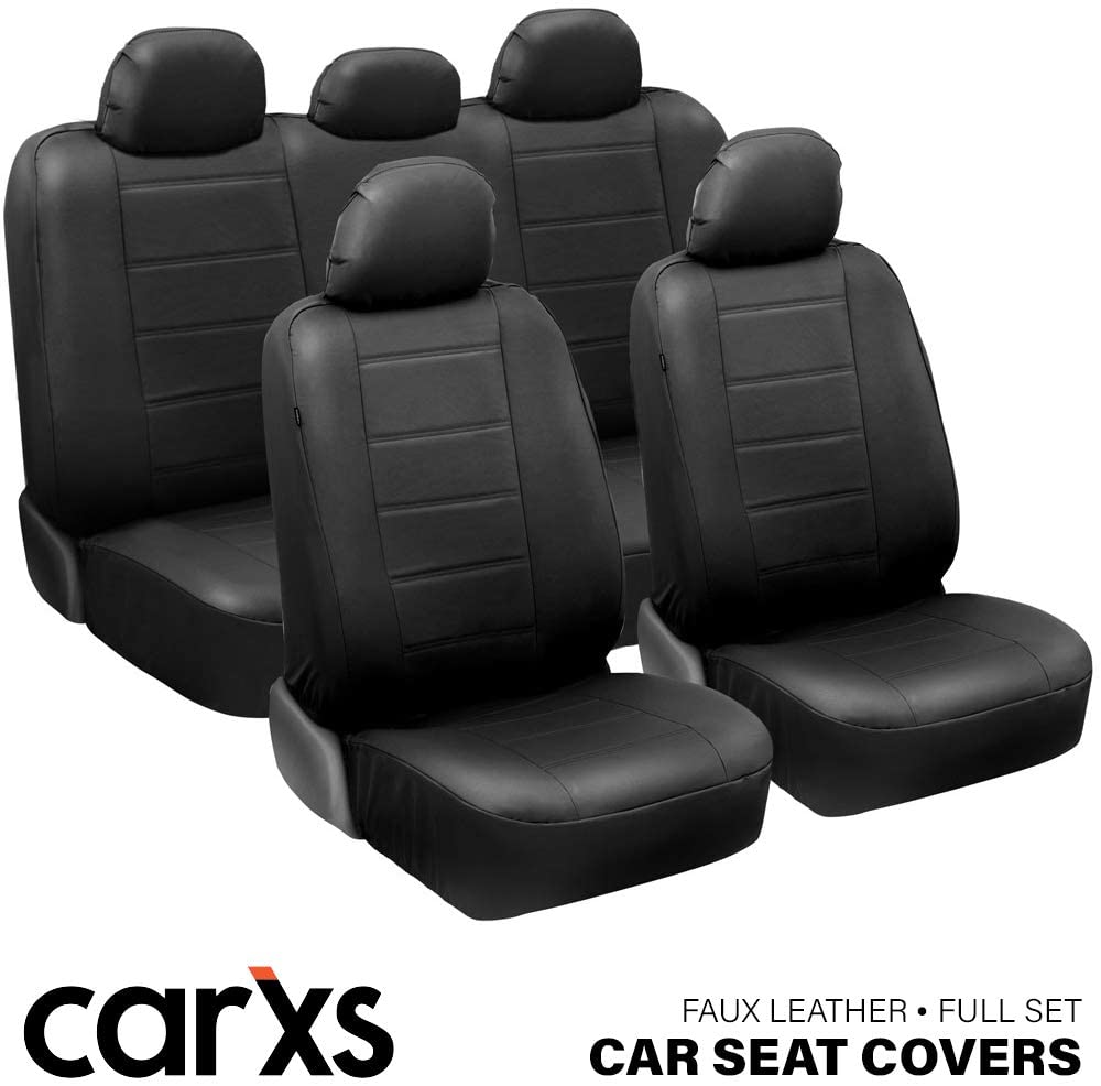 1. Carxs Ultraluxe黑色皮革座椅盖全套 - 人造皮革前排套盖和汽车的后座盖,通用合身