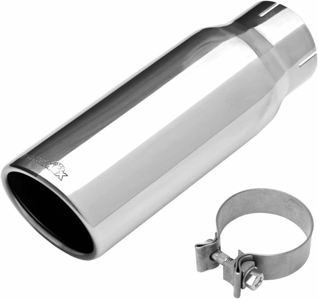 增强您的排气系统与这个提示,以压花DynoMax标志。这些消声器设有一层优质304抛光不锈钢,是斜切的光滑外观。