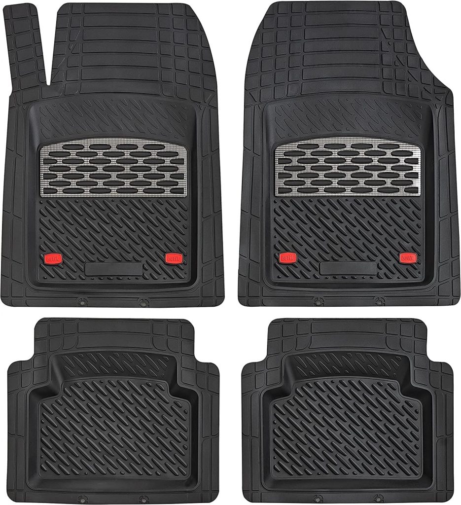这些车黑色汽车地垫是由100%的重型PVC可以承受任何天气条件。他们是耐用,灵活,和非常可靠,是一个长期投资你的车。橡胶汽车坐垫有特殊防滑钉的背面,防止滑下踏板,阻止他们。你可以安全驾驶,容易到目的地,同时也保护你的车辆的地板上,让他们远离泥土、灰尘、污渍,雪。
