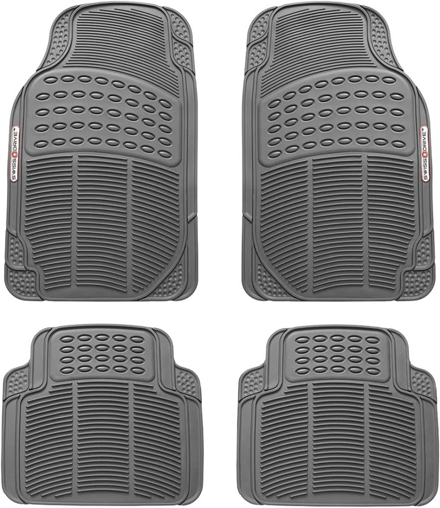 这些橡胶垫有一个持久的通道设计让你的内部安全、干燥、干净。陷阱水、下雪、灰尘、碎片和其他有害的元素。这些垫子是伟大的使用代理你的地毯垫在恶劣天气。他们将做他们的工作防止垫滑和转移。合理的价格使它成为必备的每辆车的内部。