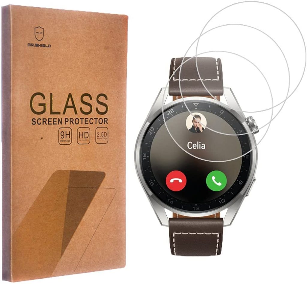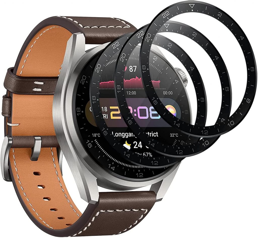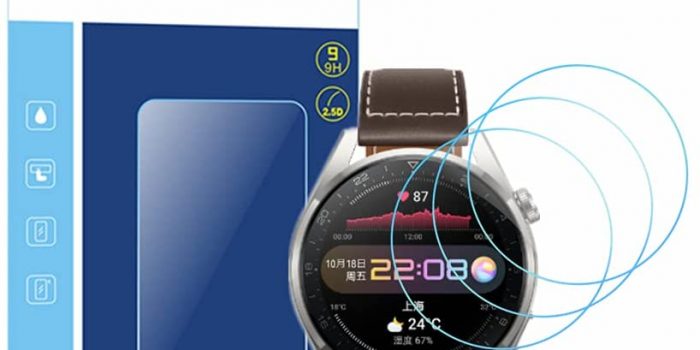 下一个是华为看3 Pro Puccy屏幕保护器。它是由耐用的9 h钢化玻璃和特种耐油处理可以保护你的手表从多余的底色和被刀划伤,钥匙,和其他一些物质。99.99%透明度高,高清,透明屏幕提供你一个更清晰的查看。疏水、疏油的屏幕涂层防止汗水和残油指纹。