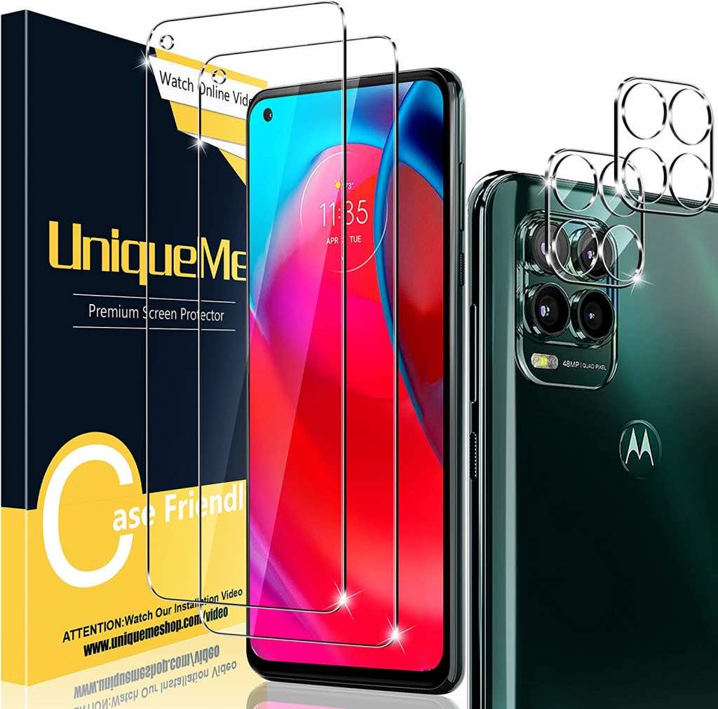 接下来是摩托罗拉Moto E22的UniqueMe钢化玻璃屏幕保护膜。激光切割尺寸为您的智能手机屏幕提供最大程度的保护,完美的切割和适合您的屏幕,3D圆形边缘提供了比直角边缘更舒适的手柄感觉。哑光层有助于减少眩光和其他玻璃保护层的反射性质。