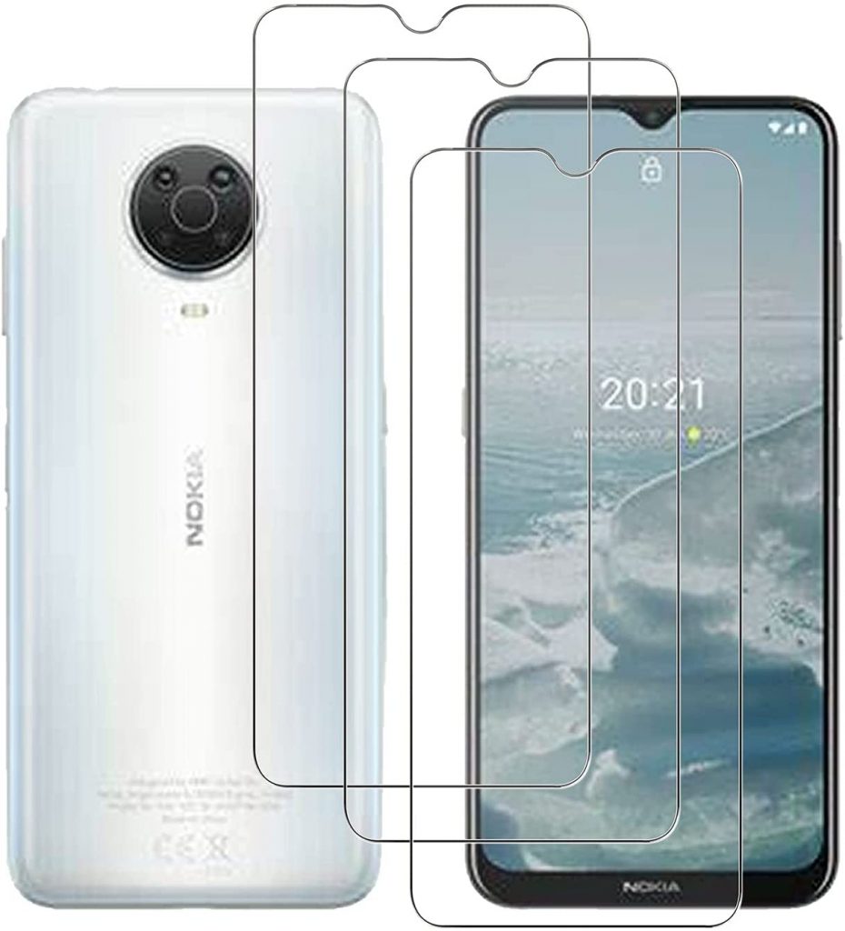 首先,我们有诺基亚G20的清沟屏幕保护器。由优质的9H钢化玻璃保护层制成,防碎、防刮。它确保了高触摸灵敏度和响应率,所以你不会感到任何不同的保护上。相机镜头也有一个清晰的保护器,以确保原始画面的质量。