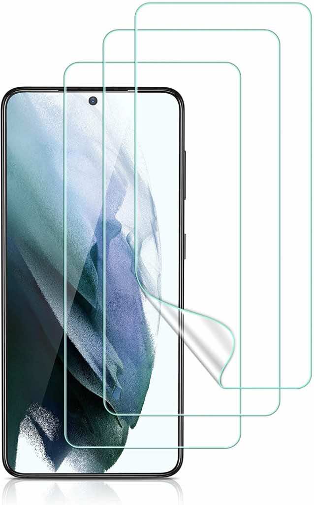 首先,我们有三星Galaxy S21+的Skinomi TechSkin屏幕保护膜。它是许多人的首选屏幕保护膜,由顶级材料制成,如自愈合,灵活,坚韧,军用级热塑性聚氨酯。这种保护器的设计可以抵抗划伤、刺穿、紫外线和变黄,这意味着它可以为大屏幕提供足够的保护。无气泡安装,没有灰尘,油和指纹污迹的风险应该不是一个问题。