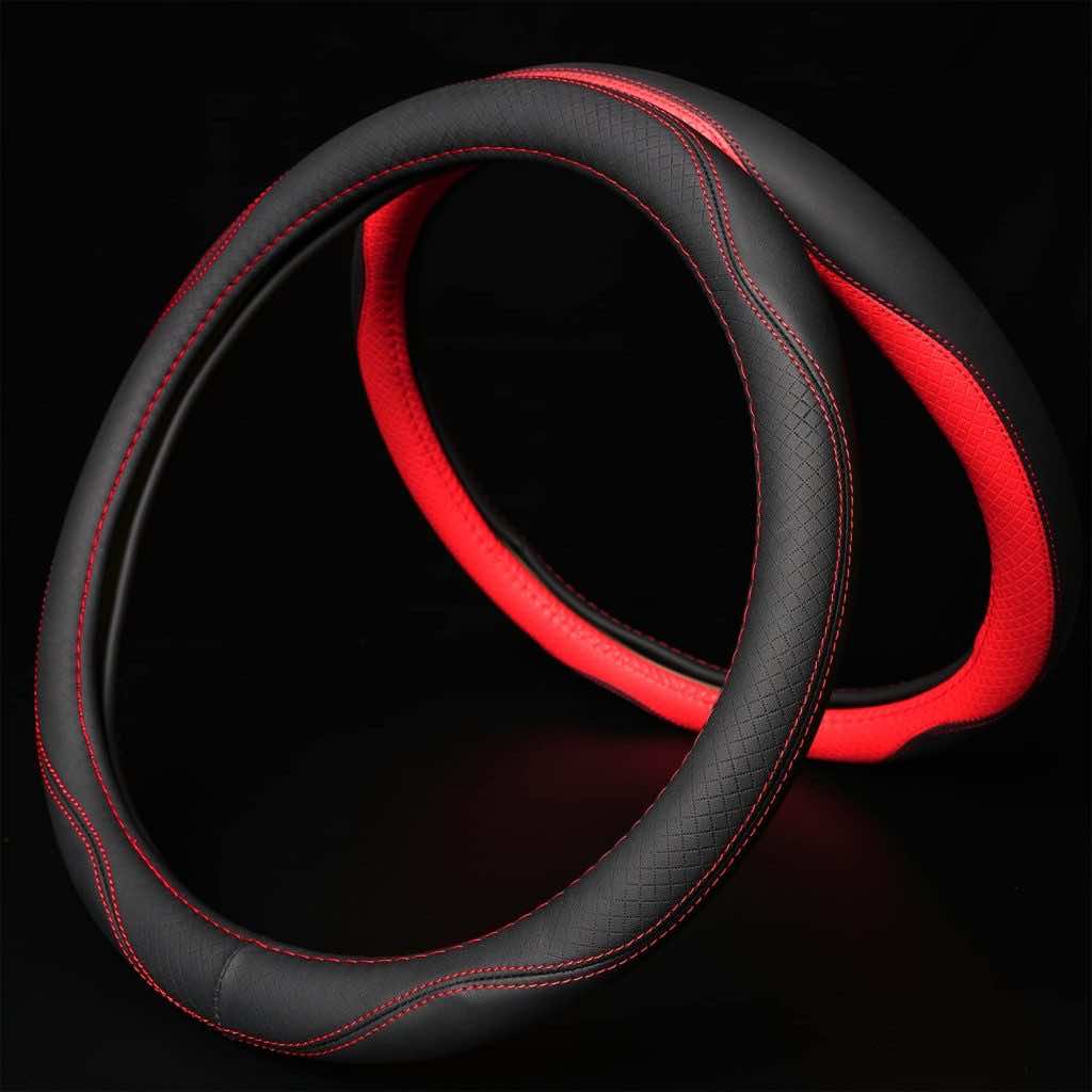 由HQ超细纤维皮革方向盘盖。更好地把握方向盘能让你更好地控制道路。升级您的车辆立即与这个惊人的外观,豪华皮革方向盘包裹与运动细节,把一些风格在您的乘坐!内部100%无异味和防滑衬里,确保稳定可靠的抓地力。