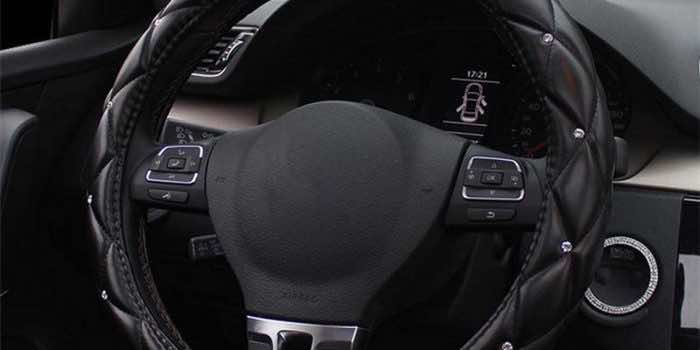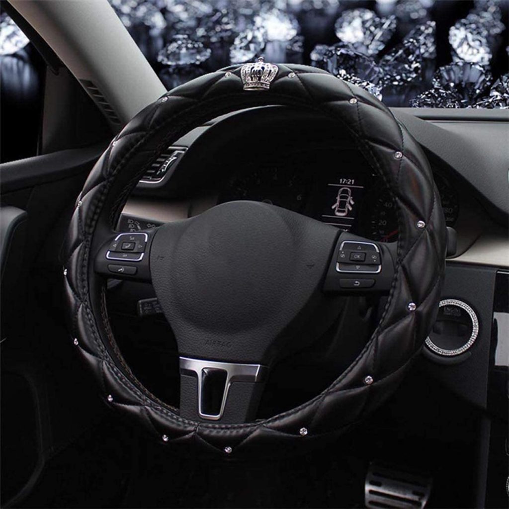这个女性或女孩的蓝色水晶皮革方向盘盖非常适合方向盘,直径为14.5-15英寸(37-38厘米)。这款配有水钻材料的水晶方向盘盖,由高质量的PU皮革和顶部钻石工艺制成:与其他相同产品相比,更稳定。