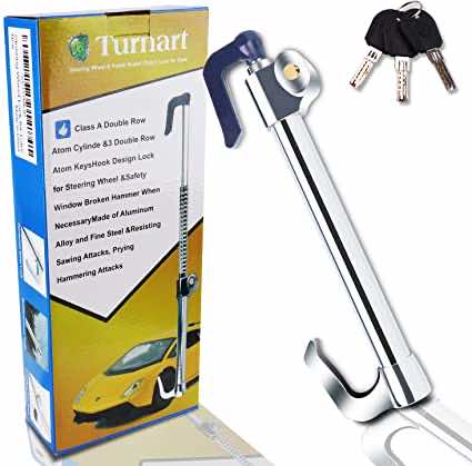 This yellow steering wheel lock is quite visible due to its color that locks the steering wheel to the belt socket. These are 17 inches long to get to the proper length of locking and it is recommended to adjust the seat position for a tighter grip. This security lock is small and easy to carry around.