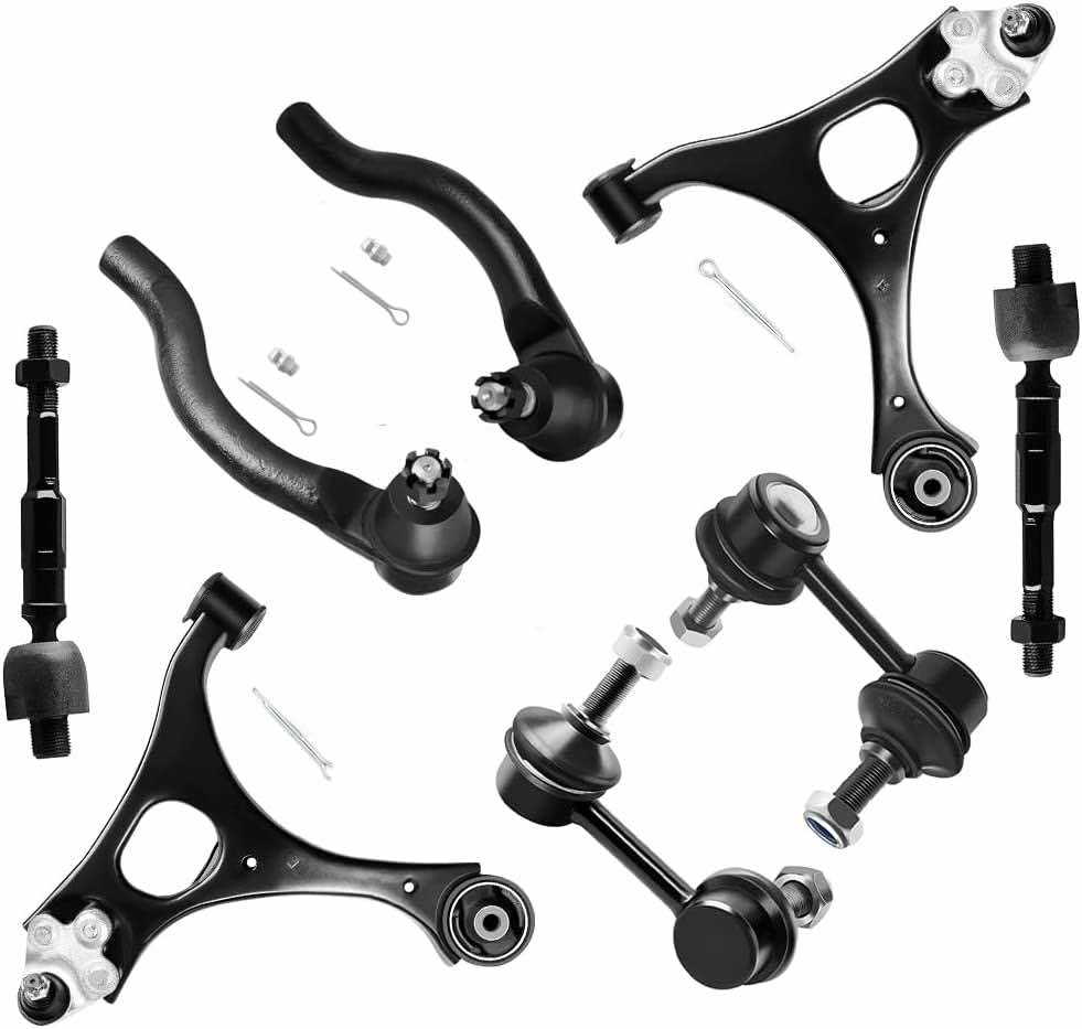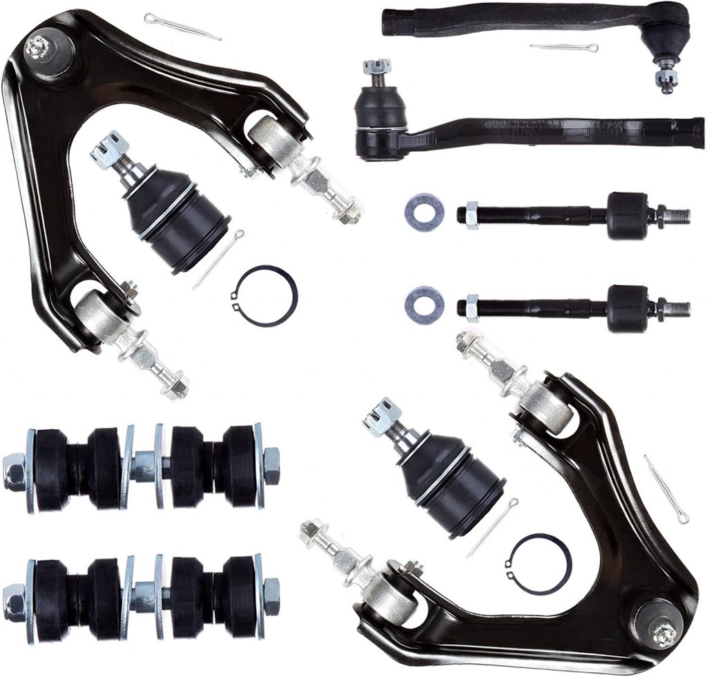 该套件包含10pcs底盘零件(1个前右外拉杆端 + 1前左外拉杆端 + 1前右上控制臂和球接头 + 1前左上左上控制臂和球接头 + 2前绑带杆端 +2前摇摆条端链接 + 2前下球接头 - 仅3.2L)