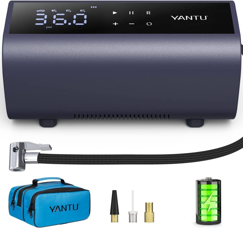 轮胎充YANTU便携式空气压缩机使用经验的基础上,为您提供一个放心auto-shut-off函数。气泵是配备了一个精确的和明亮的数字显示,可实时显示轮胎压力,预设压力,电池使用,通货膨胀模式。