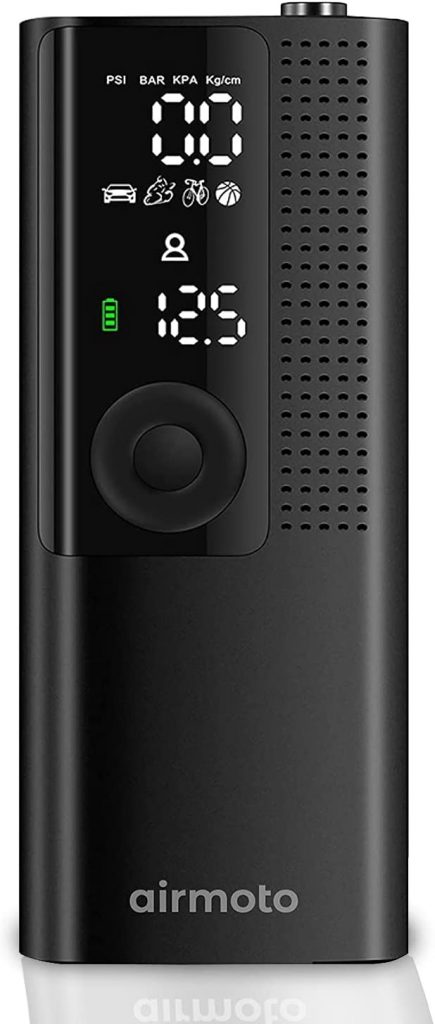 Airmoto气泵包120 PSI产出和很容易储存在你的口袋里,背包,或汽车在1.2磅和6”。充电电缆是一种USB-C通货膨胀。