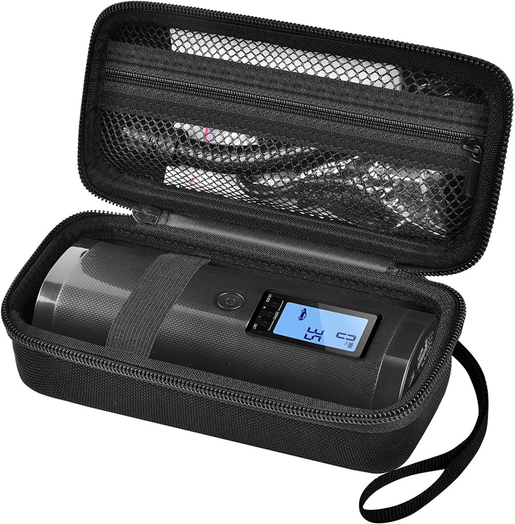 这种无绳空气压缩机是由硬EVA材料,防水,防刮,防震。这对自行车气泵盒子外观光滑,没有凸起,不伤手。如果意外下降,这样对于一个气泵能有效吸收冲击,减少损失。用软,轮胎充数码持有人有双重保护,保护轮胎充便携式空气压缩机从灰尘,污垢,影响和划痕。