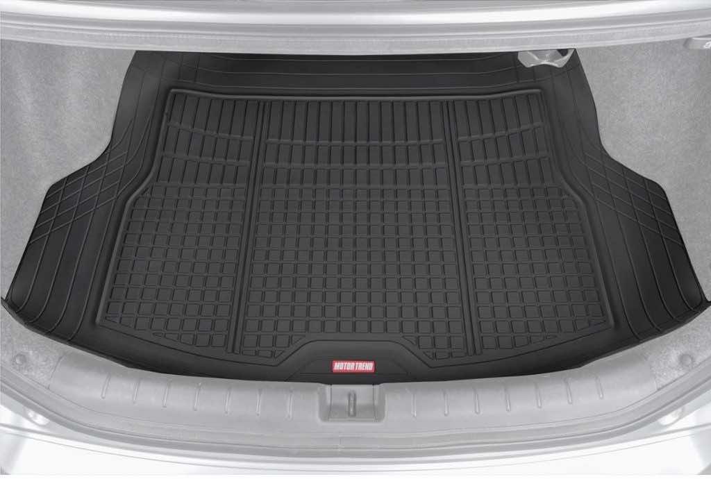 这些行李箱垫子的修剪线允许一个真正的定制适合。高的外脊防止液体漏到地毯上。沉重的尖背固定垫到位。垫子的尺寸是48″宽x 32″长。