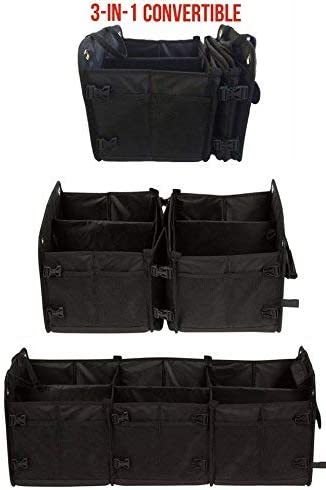 这个行李箱是用无纺布做的。货物行李箱组织者配备了坚固的隔板,可靠的底板,强大的处理。它轻便的设计让你可以把汽车行李箱直接带到超市、海滩、公园或大型运动场。