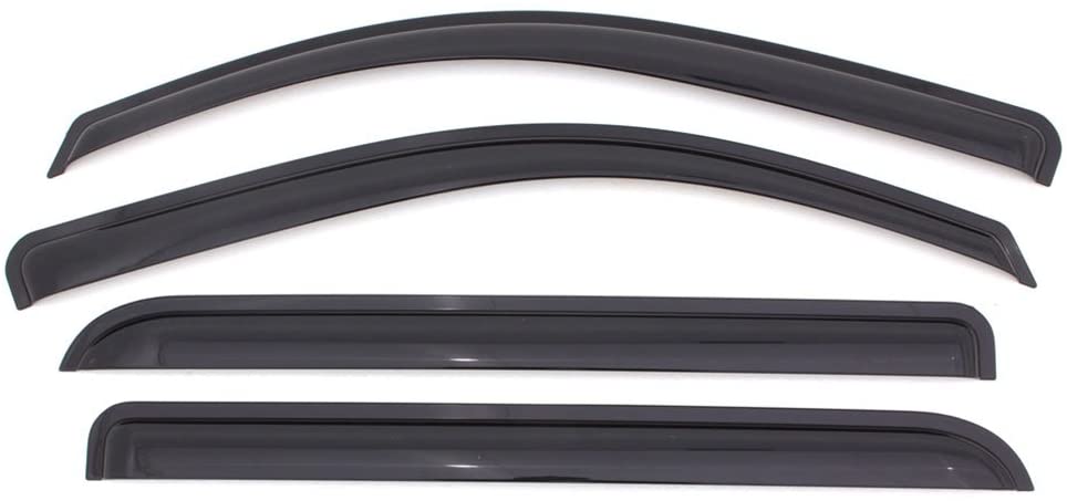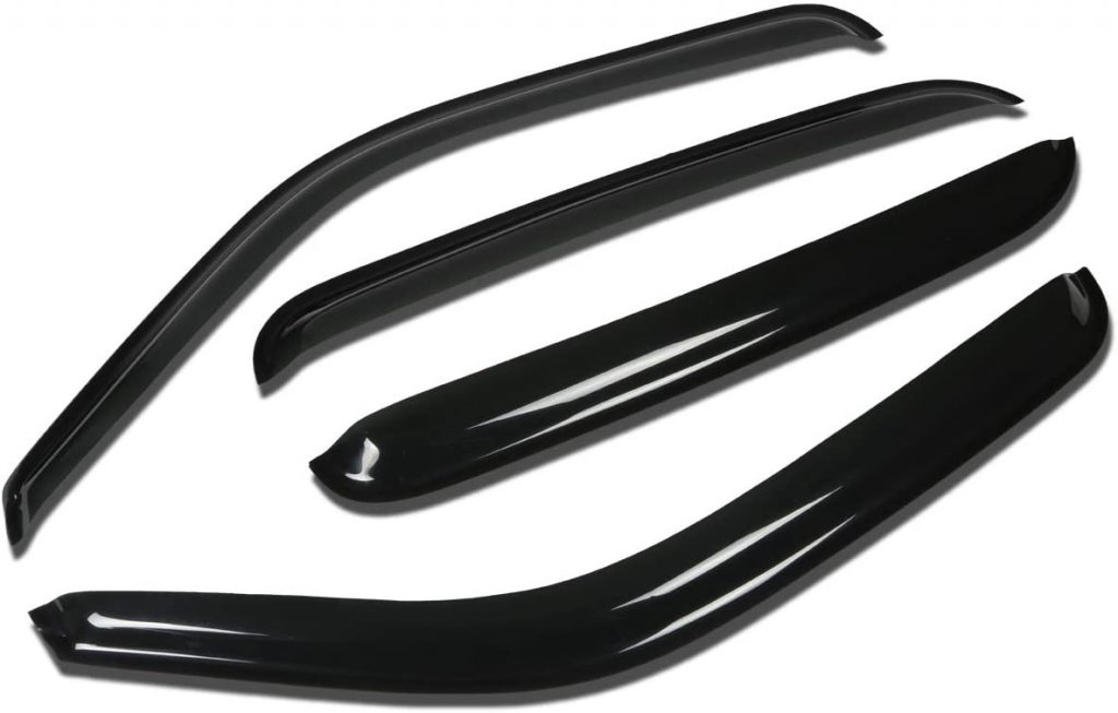 这些遮阳板减少了眩光,让新鲜空气循环车辆,而无需让雨滴在汽车中。这些由坚固耐用的聚碳酸酯材料组成,具有不锈钢饰板,使其防碎。烟熏灰色不会阻碍可以用钩子和胶带安装的视图。