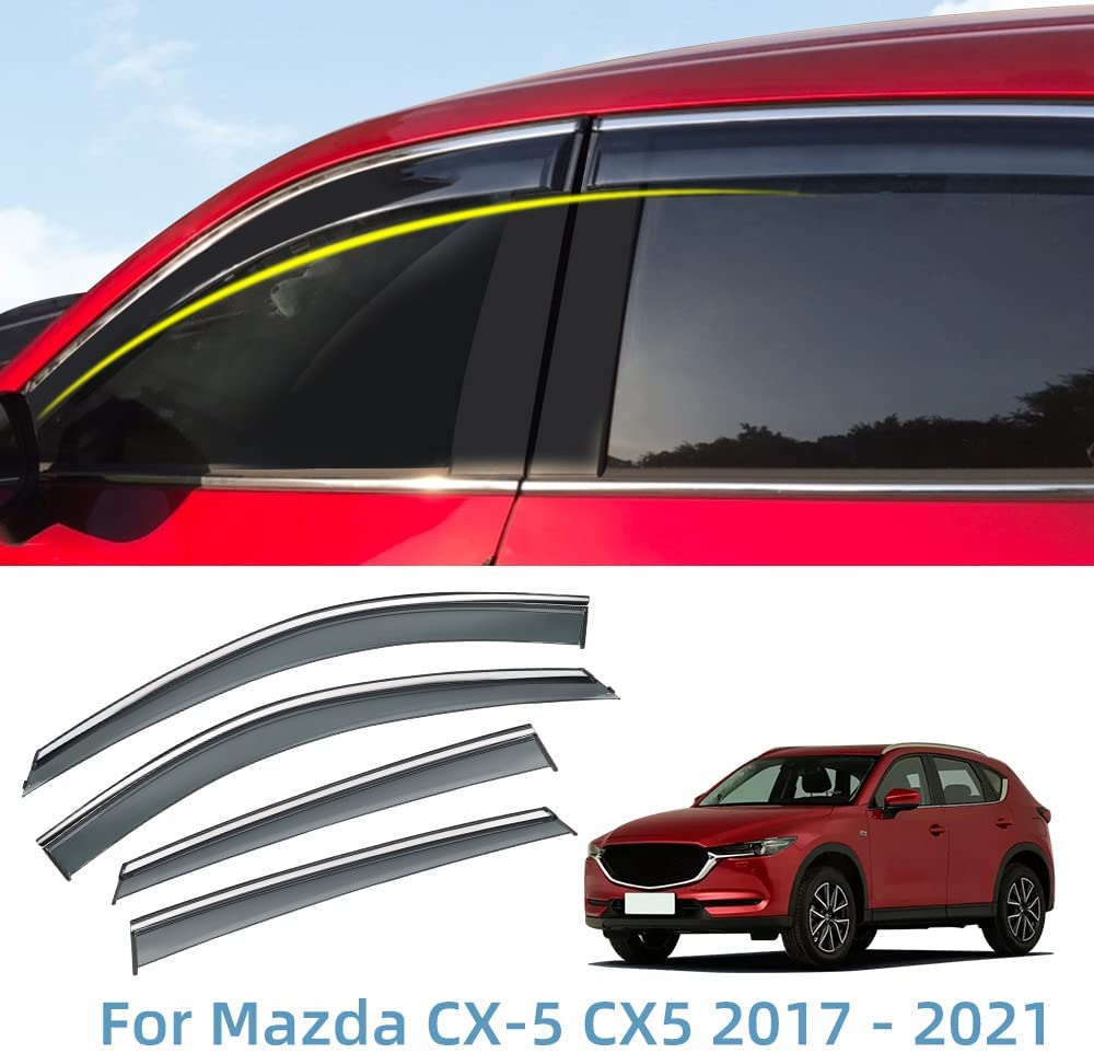 这些窗户的遮阳板与2017年至2022年的马自达CX-5兼容。它们由具有熏制的外观的增强丙烯酸材料组成。该设计有助于更有效地转移雨滴,同时降低风的噪音并有助于脱落。