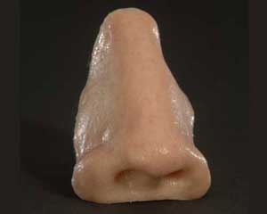 伊利诺伊大学的科学家们一直在研究制造一种能从鼻子中识别细菌的人造鼻子气味诊断特定疾病结果,就形状而言,它不太像鼻子,但它能闻到细菌,而且它的斑点会改变颜色,以识别它们。