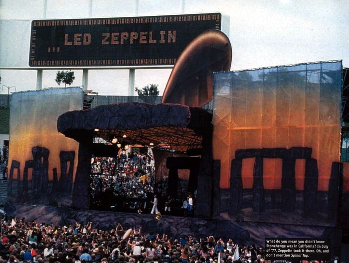 显然,摇滚乐队和巨石阵模型有一段历史;有些太大,有些太大。黑色安息日版本的巨石非常大,因为把米和英尺混淆了,而在一个摇滚乐队的“This is Spinal Tap”表演中,巨石阵的巨石却很小,因为英尺被误认为英寸。