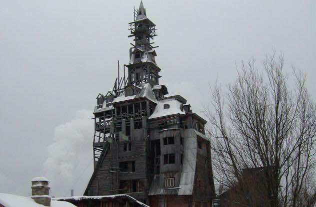 1992年,尼古拉·苏佳金(Nikolai Sutyagin)想要增加他的房子的外观。然而,他的项目导致主体结构不断增加,直到房子144英尺高成为世界上最高的木屋。唯一能阻止苏佳金修改的是一趟监狱之旅,这让他没有资金。一旦他回来,他就不能再扩建了,官员们告诉他要拆除那些使大楼有火灾隐患的额外建筑。苏佳金起初并不遵守规定,但被迫拆除了这座高耸的建筑,只留下原来的建筑和照片作为遗产。