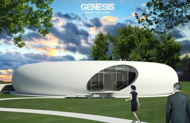 F9生产创造了四座未来派房屋,所有房屋都是为日常生活而设计的。但是,它们得到了完全保护的侵害地上灾难。它是防爆炸的混凝土盖,安全隧道和生命支持系统似乎仅是为核战争而设计的。