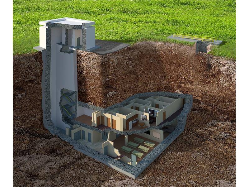 这座地下房屋设有两间卧室和三间浴室,于1970年代建造。它的目的是保护冷战期间的核威胁。掩体藏在房子下面,其发电机,电梯,对讲系统,游泳池,按摩浴缸和舞池。