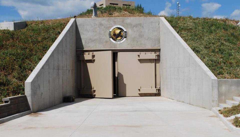这是建于1969年,但在2012年进行了翻新。它可以承受许多威胁,例如20公斤的核爆炸。它散布了32英亩的土地,带有3英尺厚的墙壁,净化阵雨和先进的进气系统。