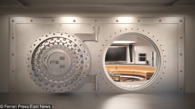 这是一个舒适的庇护所,配备了火灾控制系统和发电机。它可以保护居民免受任何外部危险。安全中心枢纽,模块化中央沙发和现代电视系统为该地方增添了舒适感。