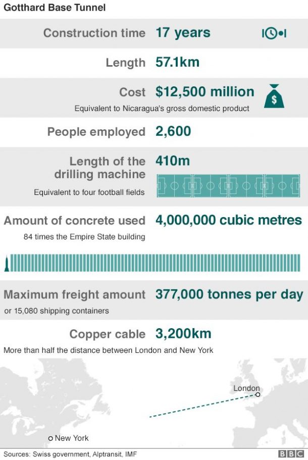 自1947年以来,这个想法一直在考虑,但建设始于18年前。该项目的价格超过12亿美元(83亿英镑),并在1992年由瑞士选民在全民投票中认可。