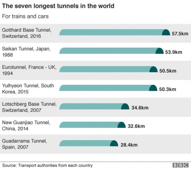 自从瑞士刚刚打开Gotthard Base Tunnel(GBT)以来,日本似乎不再拥有世界上最长的铁路隧道的头衔。该隧道的长度为35.4英里,位于Gotthard Massif的下方7545英尺,穿过瑞士阿尔卑斯山。据说该隧道在瑞士阿尔卑斯山下的北欧和南欧之间提供了高速铁路。