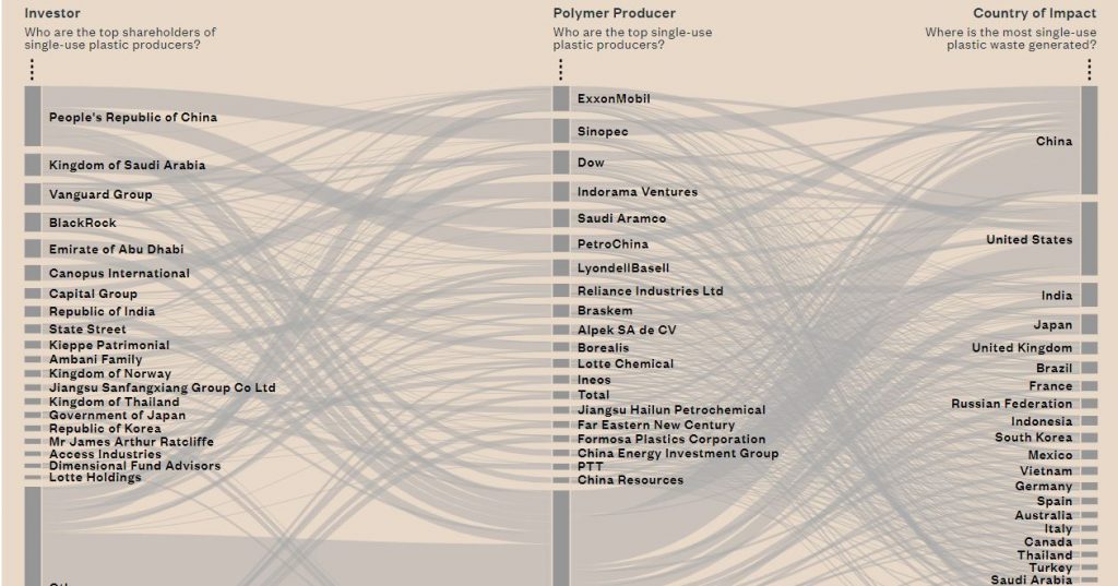 所有这些公司都是由世界各地的大银行资助的。根据明德罗基金会的报告,“自2011年以来,包括巴克莱银行、汇丰银行和美国银行在内的20家世界最大银行已为生产一次性塑料聚合物提供了约300亿美元的贷款”。其他银行包括花旗集团、摩根大通、三菱UFJ金融集团和三井住友银行集团。