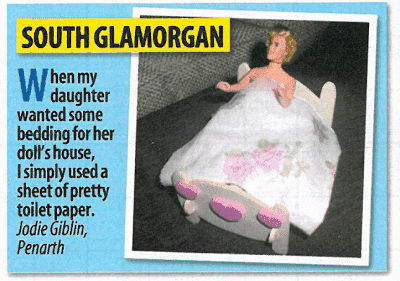 不用花钱就能让孩子开心。你可以用漂亮的卫生纸给娃娃铺上床。