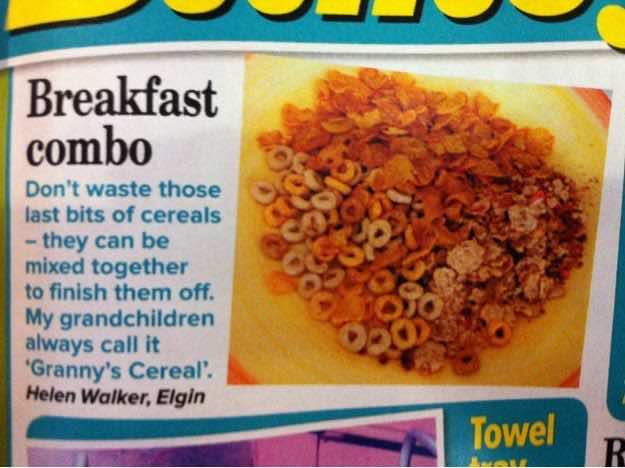 尽量不要浪费最后一点麦片,相反,你应该把它们和新包装的麦片混合在一起吃完。