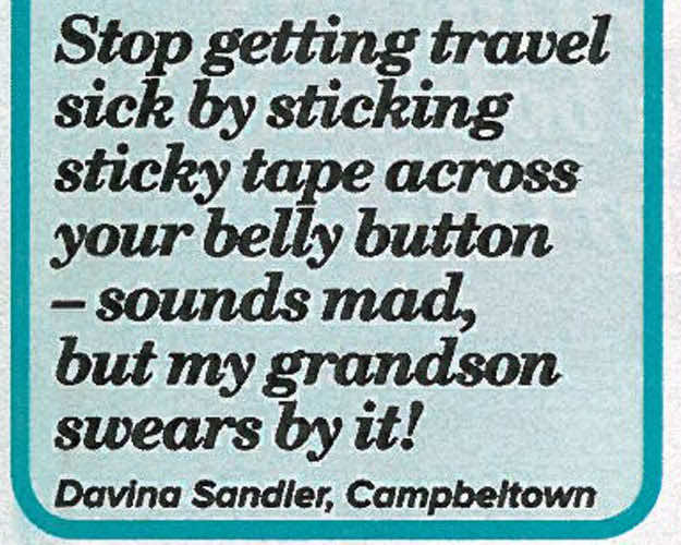 用胶带绑住肚脐可以避免晕车,是的,这真的很有效。