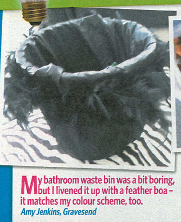 用羽毛装饰你的垃圾箱可以给它一个创新的外观。