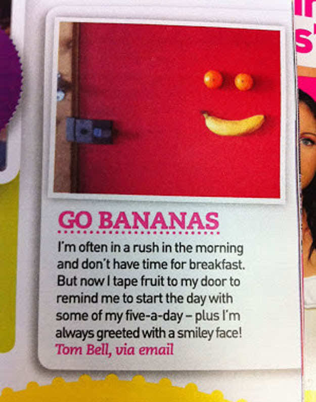 用胶带把你的早餐贴在门上,这样你就能永远记住以健康的食物开始新的一天。