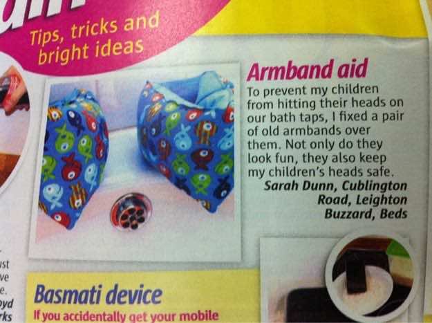 如果把孩子的手臂缠在浴室水龙头上,可以保护孩子的头部免受伤害。